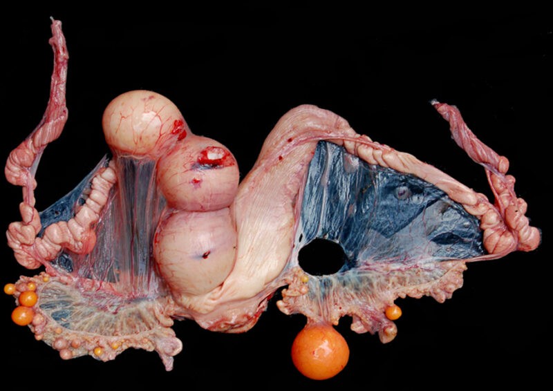 De las hembras muestreadas, 116 (33,4%) estaban grávidas y 231 (66,6%) no grávidas, incluidas 215 vitelogénicas (62,0%) y 16 no vitelogénicas (4,6%). El número medio de folículos ováricos por hembra disminuyó de 28,5 (>10 mmm de diámetro), a 7,1 (20-40 mm) y finalmente 3,2 folículos (>40 mm). Las hembras grávidas tenían en promedio 3,7 huevos sin cáscara en el oviducto, con un diámetro medio de huevo de 53,7 mm.